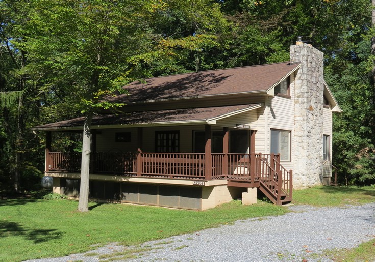time. Each features a large porch overlooking the creek. One cabin is handicap accessible. See more on this page.